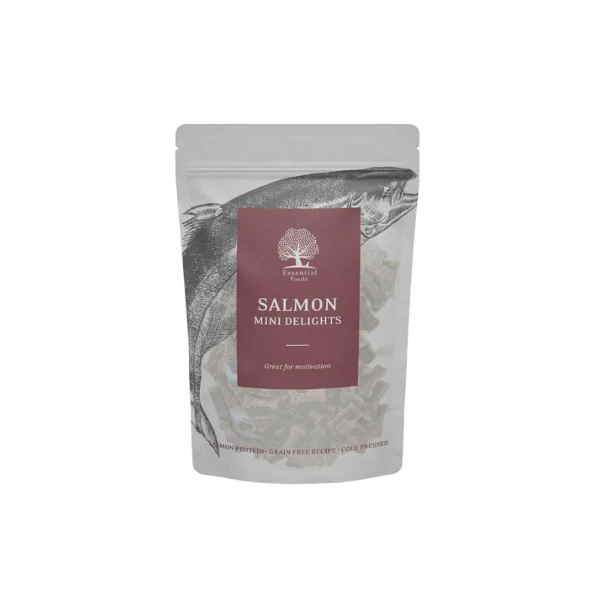 Ett spannmålsfritt recept med lax. Mjuk godis till träning, motivation eller på promenaden. Praktiska återförslutbara förpackningar.