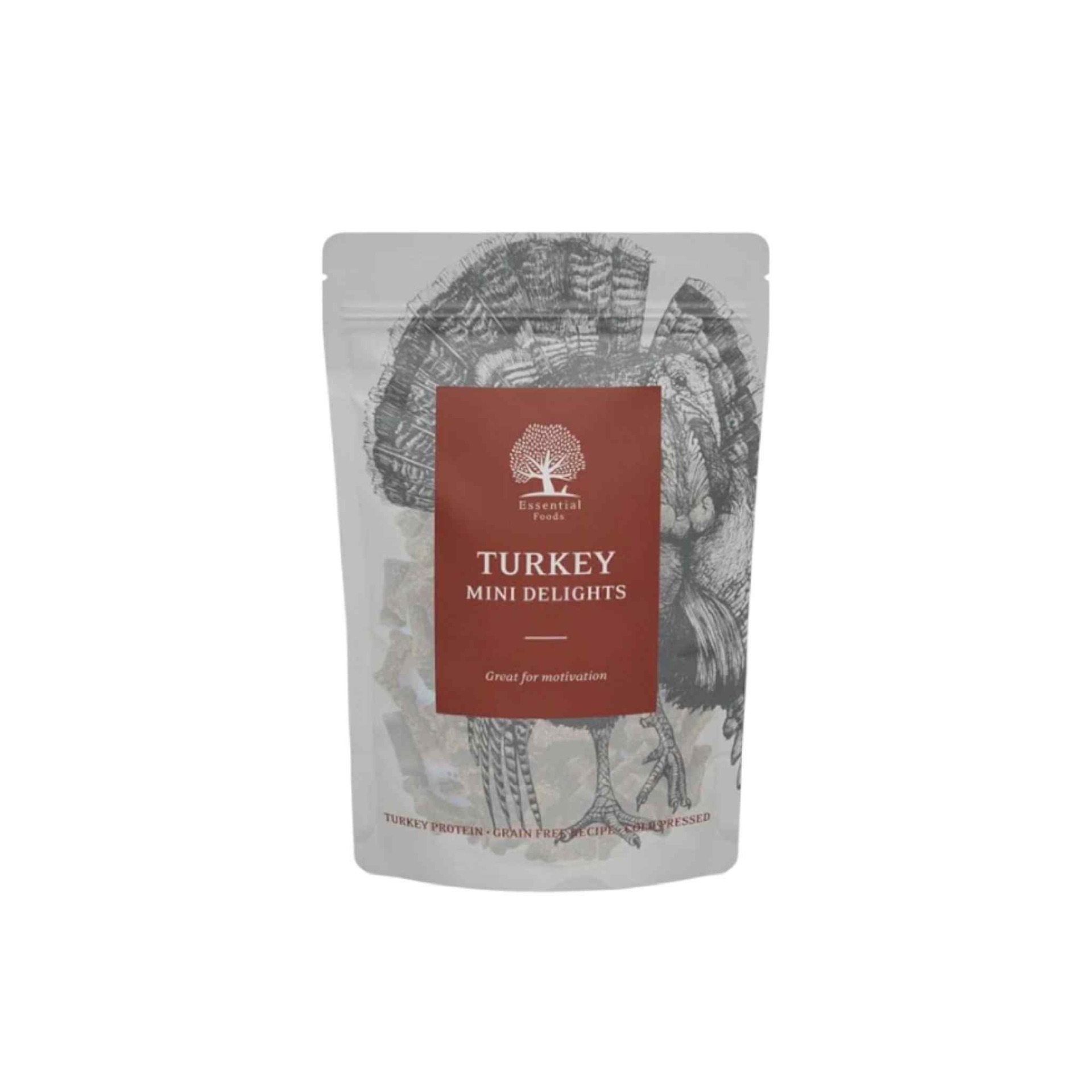 Ett spannmålsfritt recept med kalkon. Mjuk godis till träning, motivation eller på promenaden. Praktiska återförslutbara förpackningar.